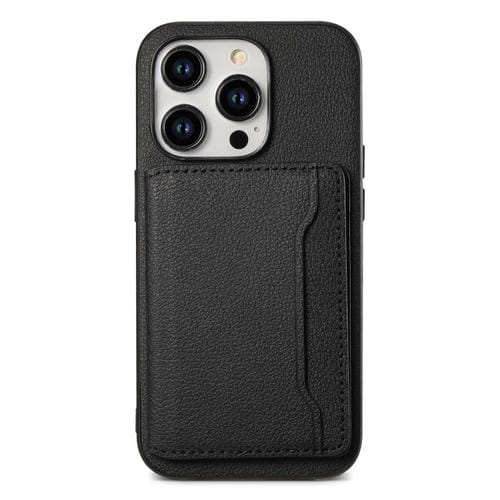 Estuche para teléfono iPhone 14 Pro Max diseño bolsa para tarjetas textura de pantorrilla (Negro)