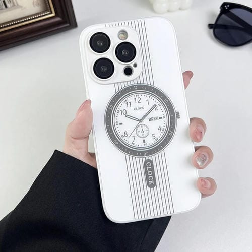 Estuche para teléfono iPhone 14 Pro Max con protección de Lente magnética y patrón de reloj (Blanco)