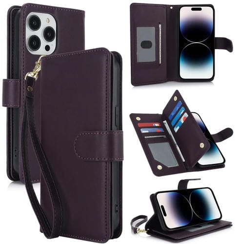 Funda para Teléfono iPhone 14 Pro Max Cuero Rfid con Billetera MultiTarjeta (Púrpura Oscuro)