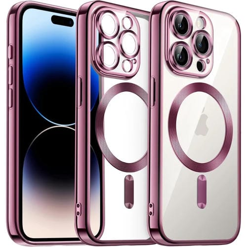 Funda para Teléfono TPU Galvanizada iPhone 14 Pro Max Transparente Magnética (Rosa)