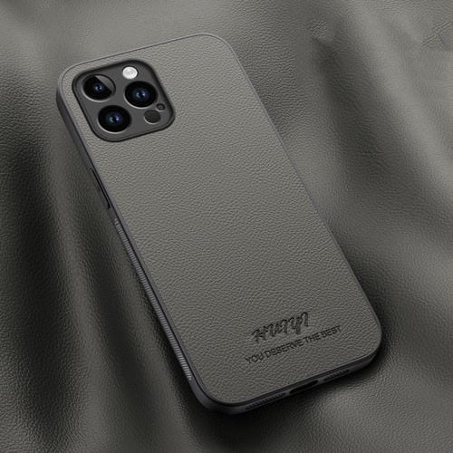 For iPhone 14 Pro Max HUIYI Magnetic MagSafe Leather Phone Case (Gray)