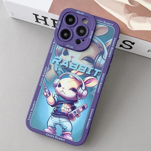 Funda para teléfono TPU Apple iPhone 14 Pro Max Liquid Angel Eyes Hip Hop Rabbit (Auriculares Morados)