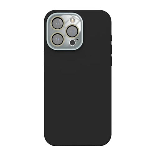 Película de Lente acrílica + funda silicona líquida para iPhone 14 Pro cobertura total (Negro)