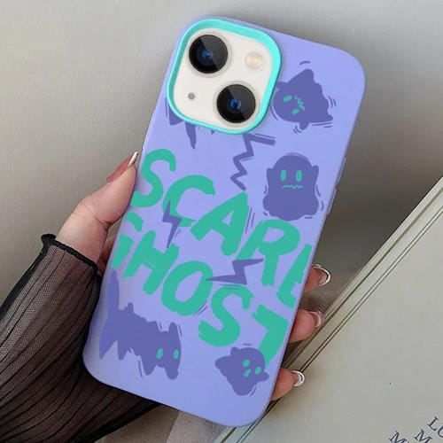 Estuche híbrido para iPhone 14 Scared Ghost PC y TPU (Púrpura)