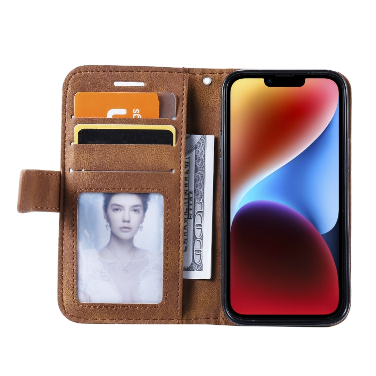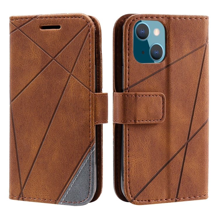 For iPhone 14 Skin Feel Splicing Leather Phone Case(Brown)