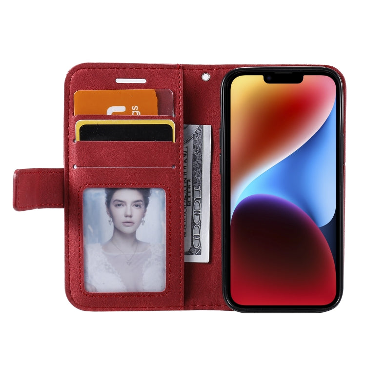 For iPhone 14 Skin Feel Splicing Leather Phone Case (Red)