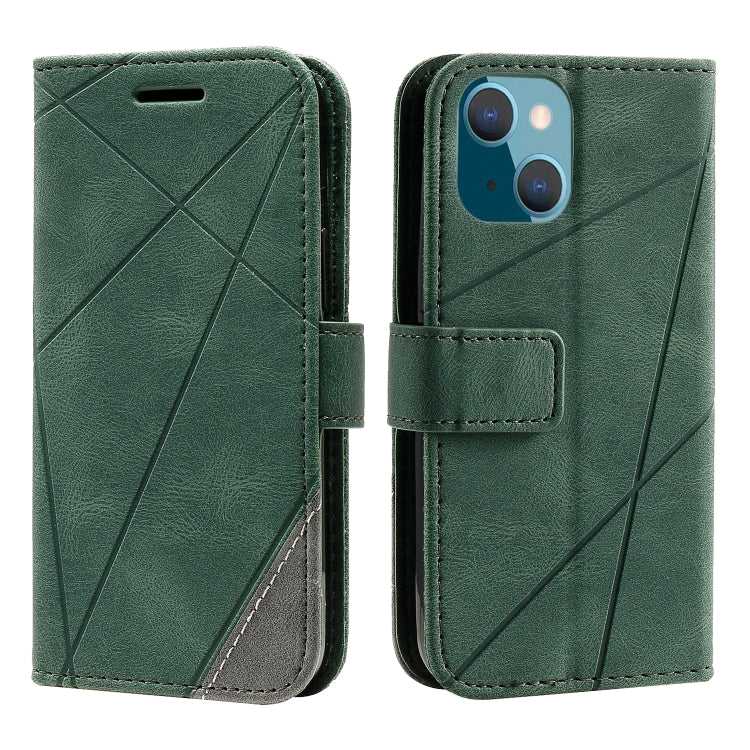 For iPhone 14 Skin Feel Splicing Leather Phone Case (Green)