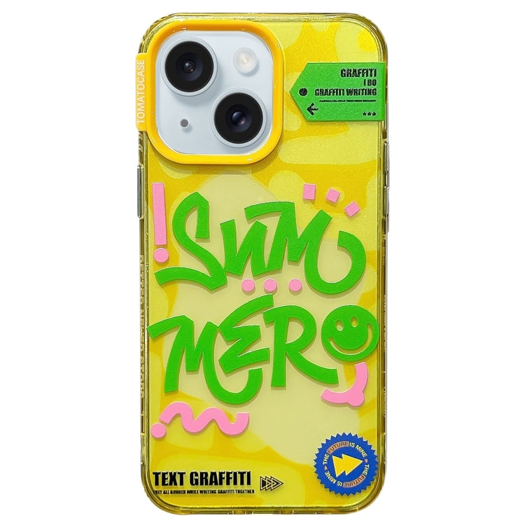 Funda para Teléfono iPhone 14 Tomato Text Graffiti TPU Hybrid PC (Amarillo)