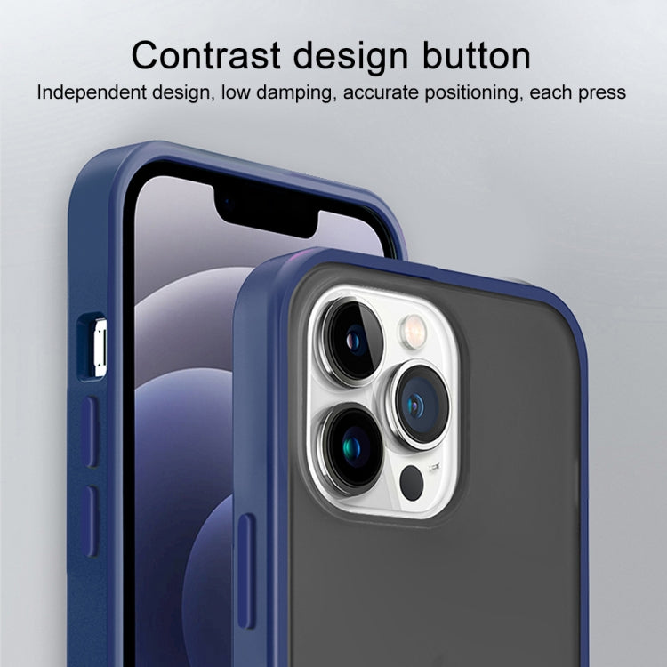 Funda para iPhone 14 Translucent Skin Feel Frosted Case (Negro + Azul Marino)