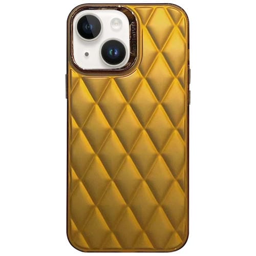 Caja de teléfono híbrida para iPhone 15 3D Rhombus galvanoplastia TPU PC (Oro)