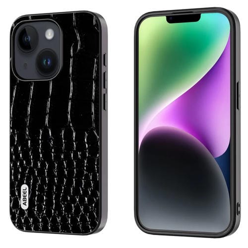 For iPhone 15 ABEEL Crocodile Pattern Genuine Leather Phone Case with Black Edge (Black)