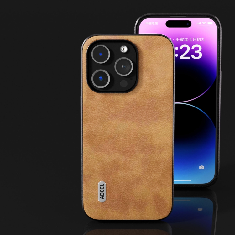 Funda para iPhone 15 Abeel Retro Litchi Texture PU Phone Case (Marrón)