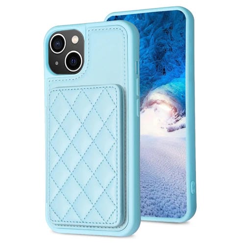 For iPhone 15 BF25 Square Plaid Card Bag Holder Phone Case(Blue)