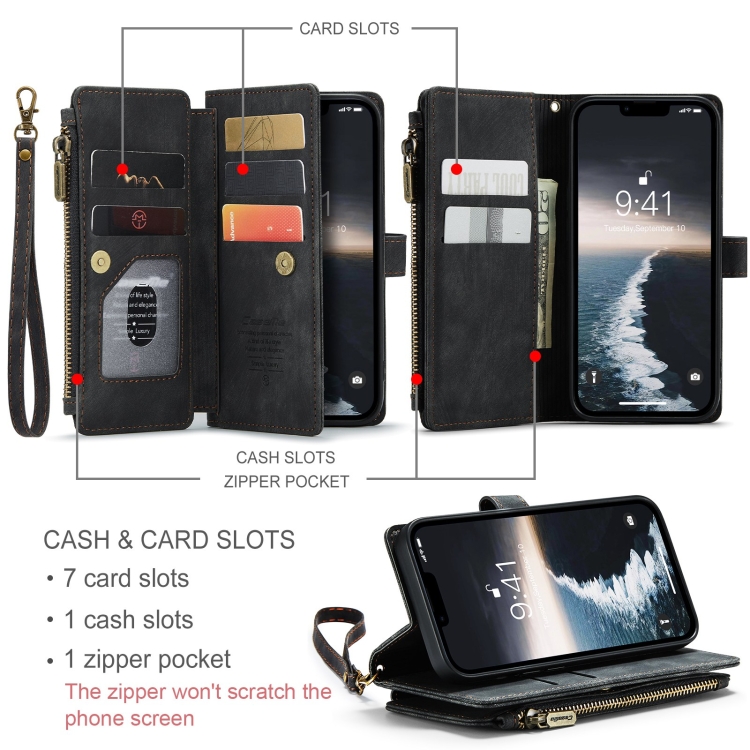 Funda para teléfono Caseme C30 para iPhone 15 Multifuncional (Negro)