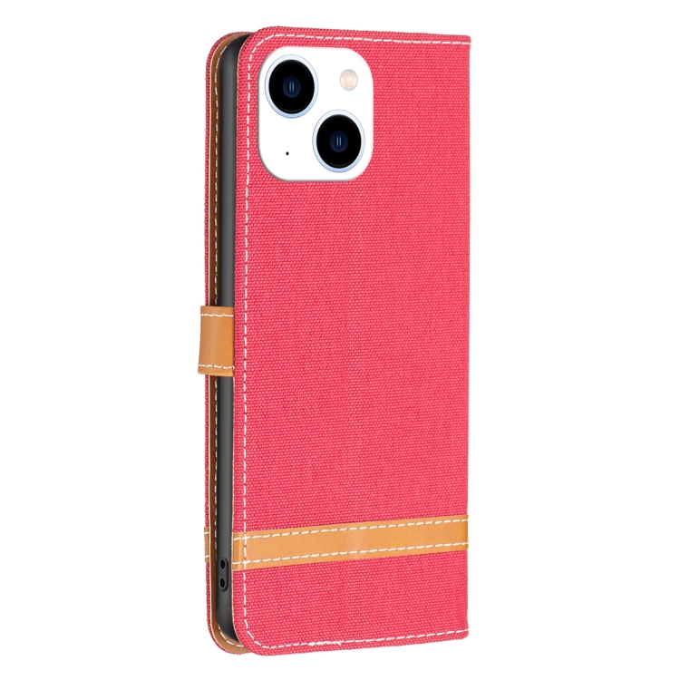 Funda para iPhone 15 Color Block Denim Texture Cuero (Rojo)