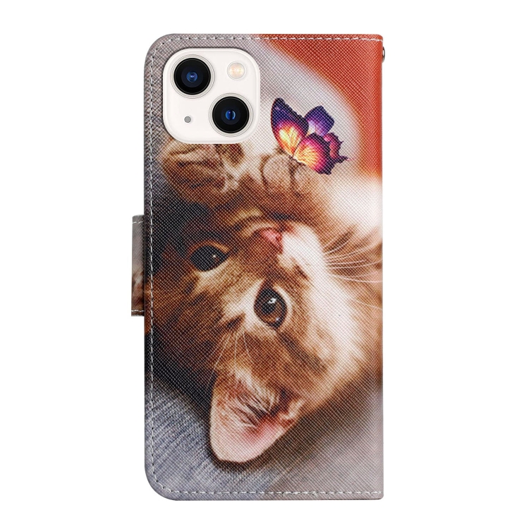 Estuche para teléfono iPhone 15 con tapa de cuero y dibujo 3D (Gato Mariposa)