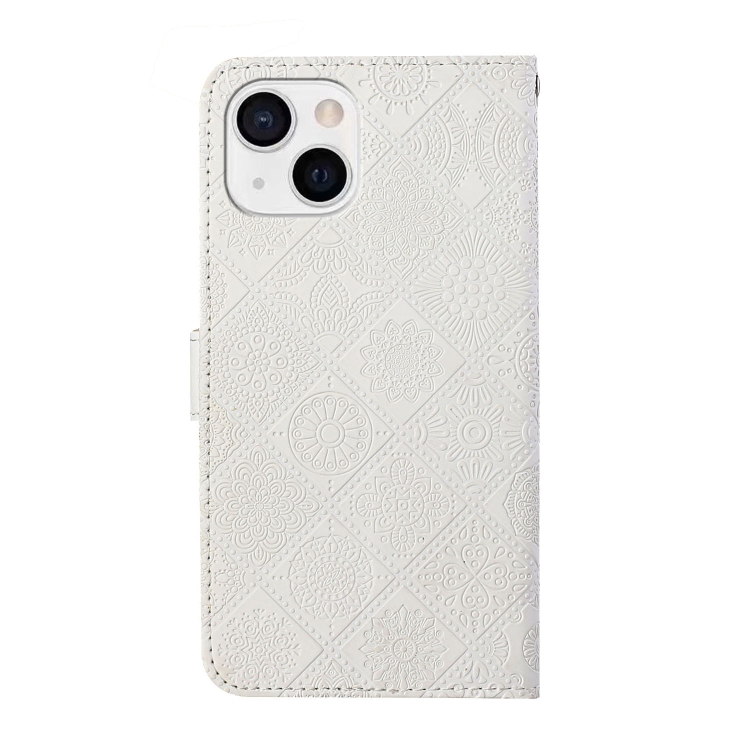 Estuche para Teléfono iPhone 15 Cuero Patrón En Relieve Estilo Étnico (Blanco)