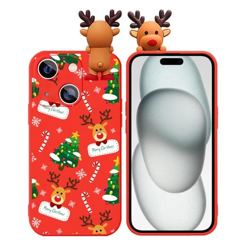 For iPhone 15 Soft TPU Phone Case with Deer Embossed Doll and Colored Drawing (Christmas Tree and Deer)