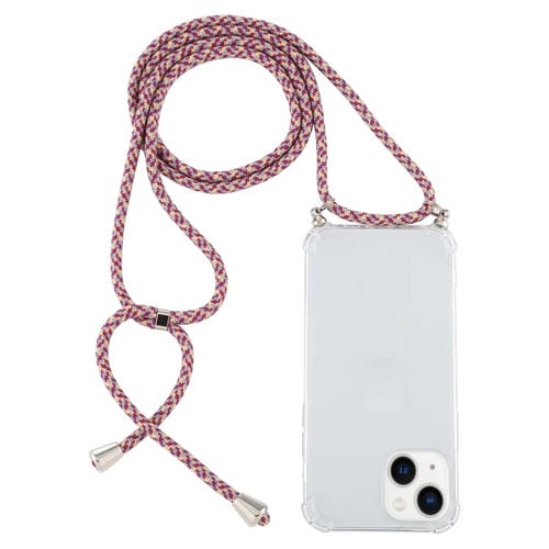 Funda para iPhone 15 TPU Transparente a Prueba de Golpes de Cuatro Esquinas con Cordón (Rojo Púrpura)