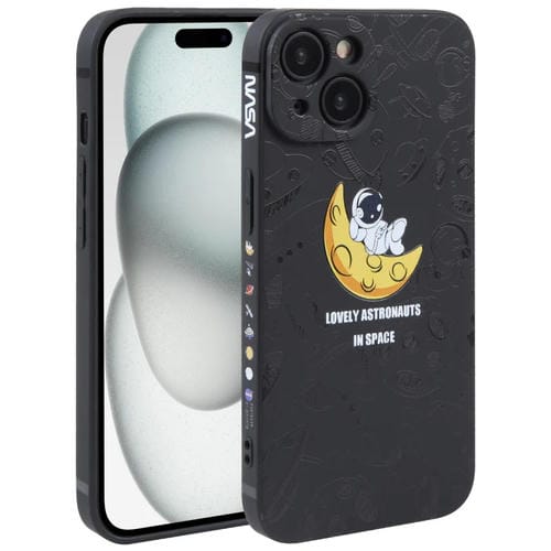 Funda para Teléfono iPhone 15 Silicona Borde Recto Patrón Astronauta (Black)