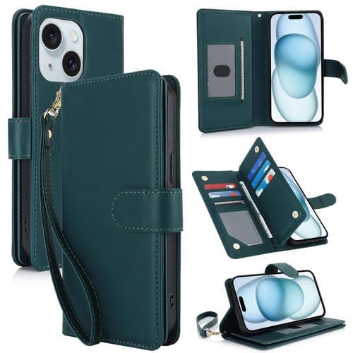 Funda para Teléfono iPhone 15 Cuero Rfid Billetera MultiTarjeta (Verde)