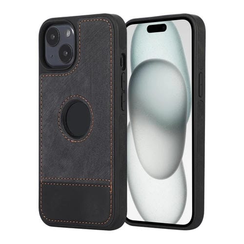 For iPhone 15 PU Phone Case Hollow Cutout Stitching Splicing Case (Black)