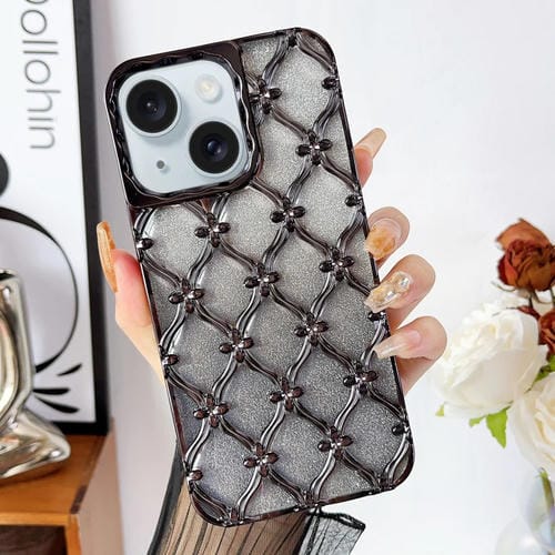 For iPhone 15 Gradient Glitter Paper Star Flower Electroplated TPU Phone Case (Black)