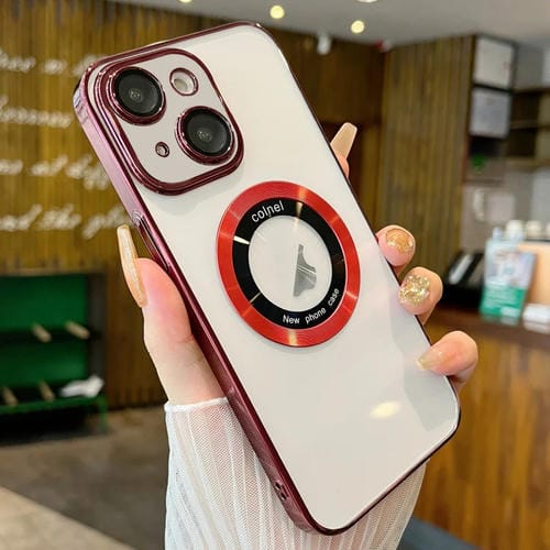 For iPhone 15 MagSafe Phone Case Transparent Electroplated PC (Wine Red)