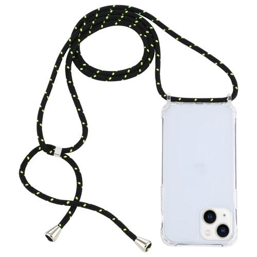 Funda Protectora Acrílico para iPhone 15 a Prueba de Golpes con Cordón (Negro Verde)
