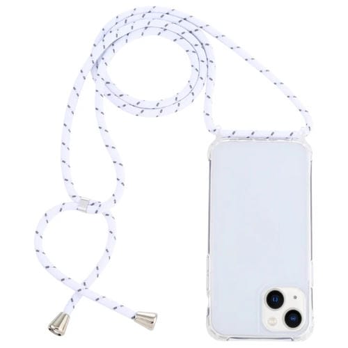Funda Protectora Acrílico para iPhone 15 Airbag a Prueba de Golpes con Cordón (Grano Áspero Gris Blanco)