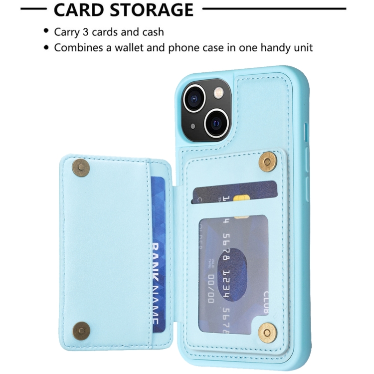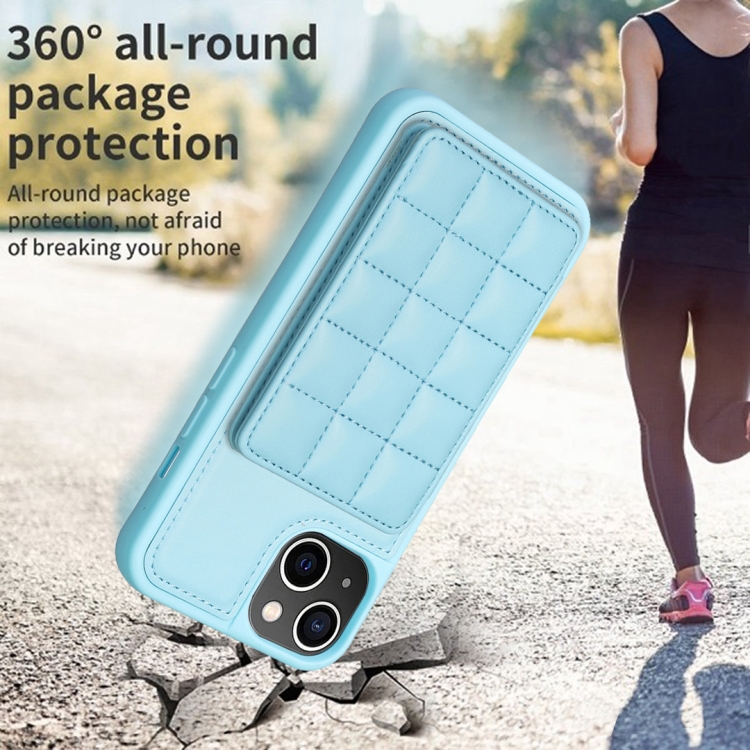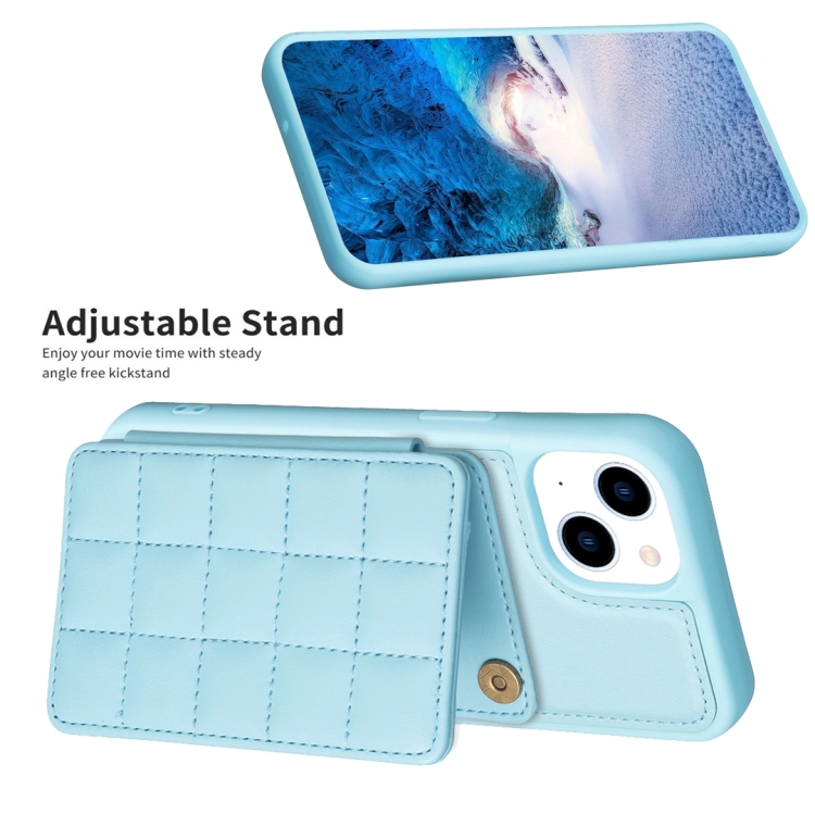 Funda para iPhone 15 Grid Card Slot Holder Phone Case (Azul)
