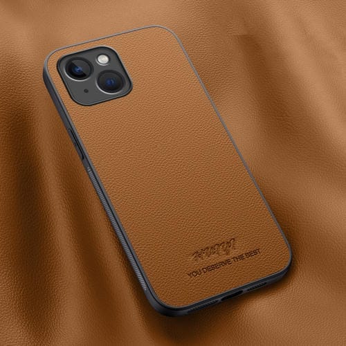 For iPhone 15 HUIYI MagSafe Magnetic Leather Phone Case(Brown)