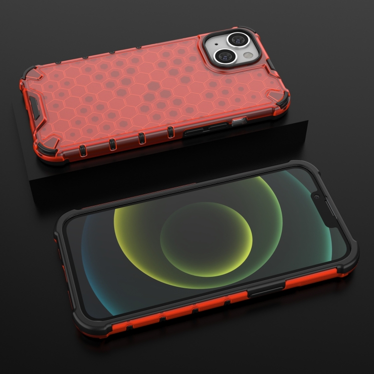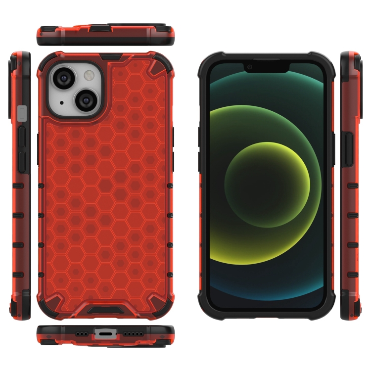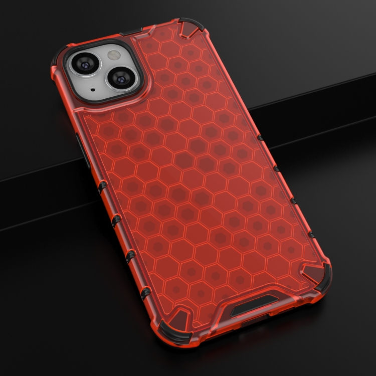 For iPhone 15 Lanyard Honeycomb Phone Case (Red)