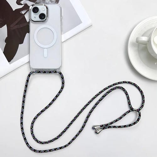 For iPhone 15 MagSafe Magnetic PC+TPU Phone Case with Lanyard(Colorful Black)