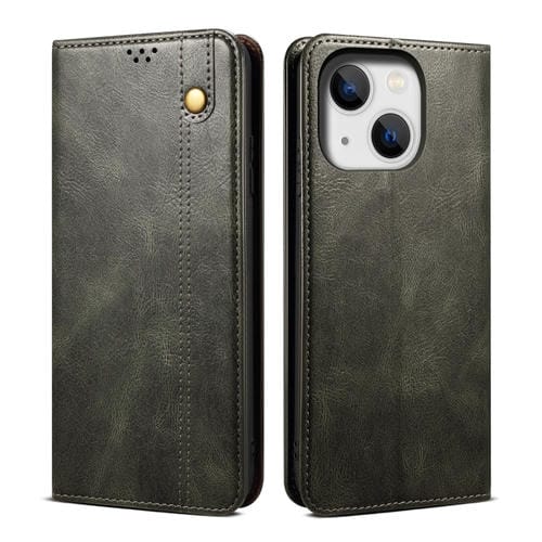 Funda para iPhone 15 Oil Wax Crazy Horse Texture Cuero para Teléfono (Verde)