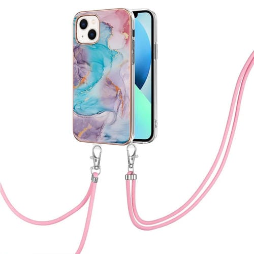 Estuche TPU para iPhone 15 Patrón Galvanoplastia Imd a Prueba de Golpes con Cordón para Cuello (Mármol Azul)