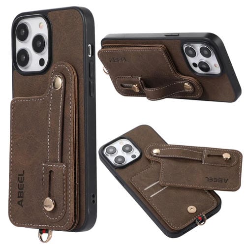 Funda para iPhone 15 Plus Abeel Litchi Texture Card Bag PU Phone Case (Caqui)