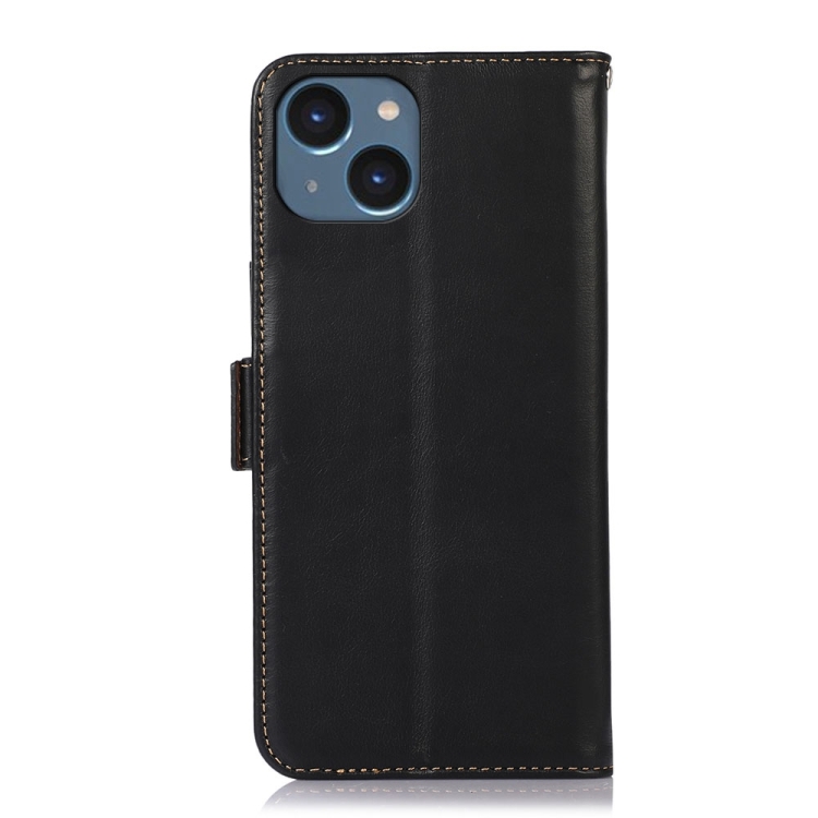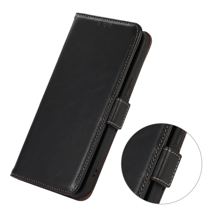 Funda de teléfono iPhone 15 Plus Crazy Horse cuero de vaca con capa superior (Negro)