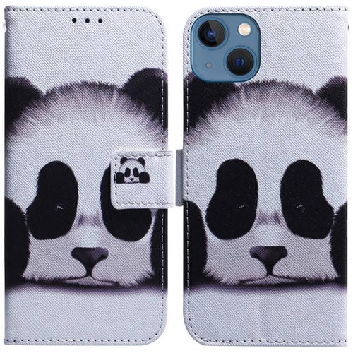 Estuche de Teléfono iPhone 15 Plus Cuero con Tapa Dibujo Coloreado (Panda)