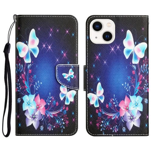 Estuche para Teléfono iPhone 15 Plus Cuero con Dibujo Coloreado (Mariposa)