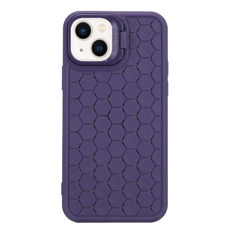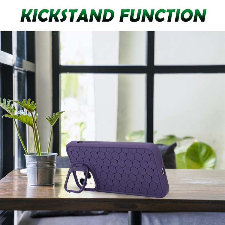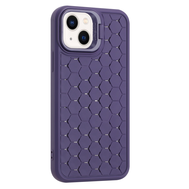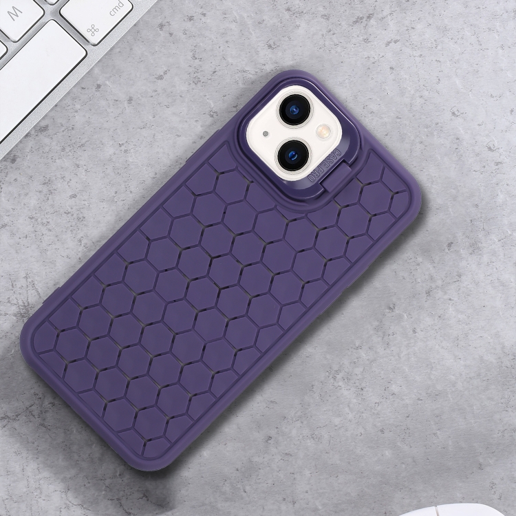 Estuche para teléfono TPU iPhone 15 Plus con soporte para Lente radiante de panal (Púrpura)
