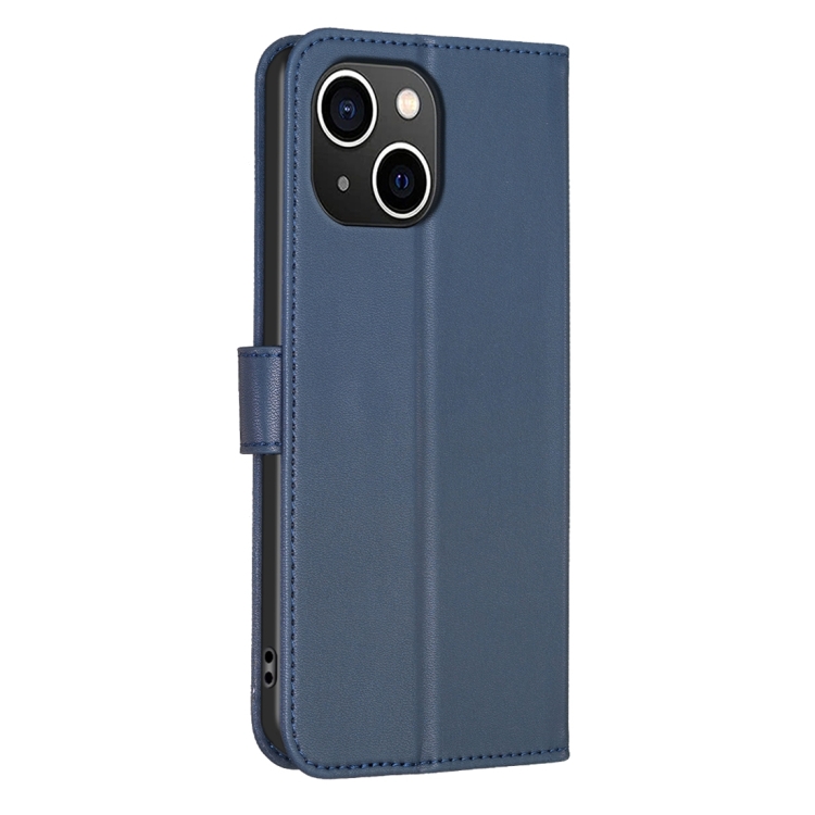 Funda para Teléfono iPhone 15 Plus Cuero con Relieve de Cuatro Hojas (Azul)