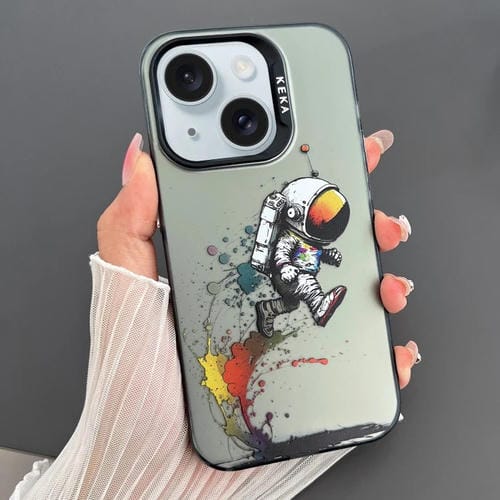 For iPhone 15 Plus Phone Case IMD Animal Graffiti TPU+PC Double-sided (Walking Astronauts)