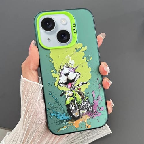 For iPhone 15 Plus Phone Case IMD Animal Graffiti TPU+PC Double-sided (Motorcycle Dog)