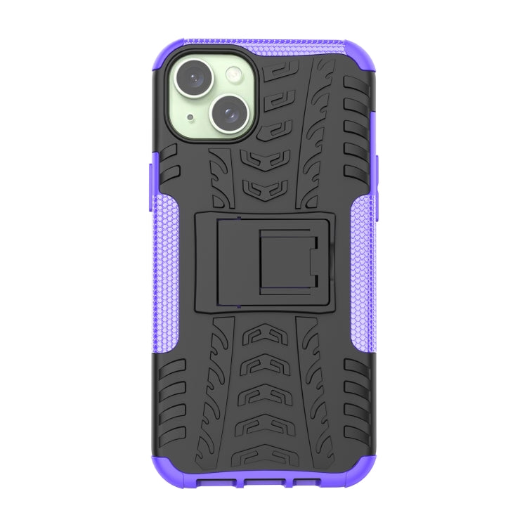 Funda para Teléfono iPhone 15 Plus TPU + PC Textura de Neumático con Soporte (Púrpura)