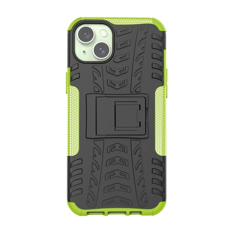 Funda para Teléfono iPhone 15 Plus TPU + PC Textura de Neumático con Soporte (Verde)