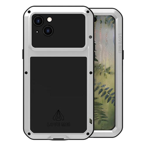 Caja de Teléfono Love Mei para iPhone 15 Plus a Prueba de Polvo Impermeable y Golpes de Metal (Plateado)