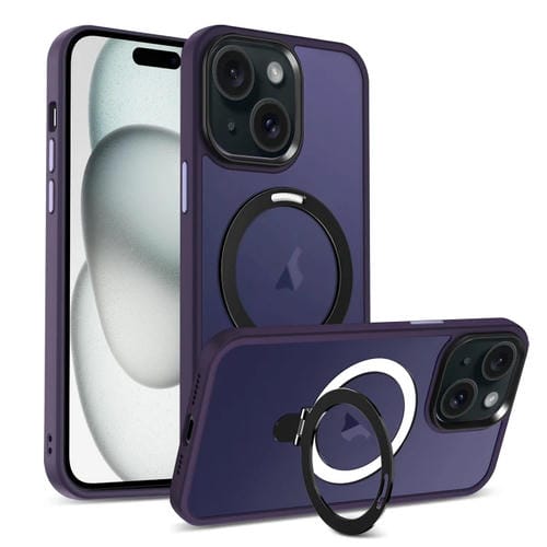 Funda para Teléfono iPhone 15 Plus Magsafe Holder Skin-Feel PC Hybrid TPU (Púrpura Oscuro)