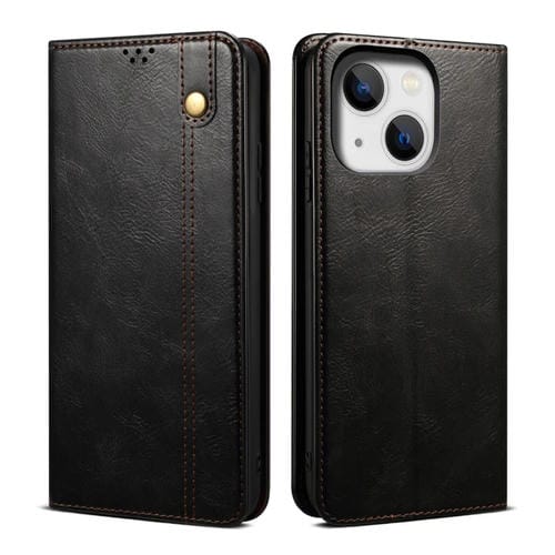 Funda para iPhone 15 Plus Oil Wax Crazy Horse Texture de Cuero (Negro)