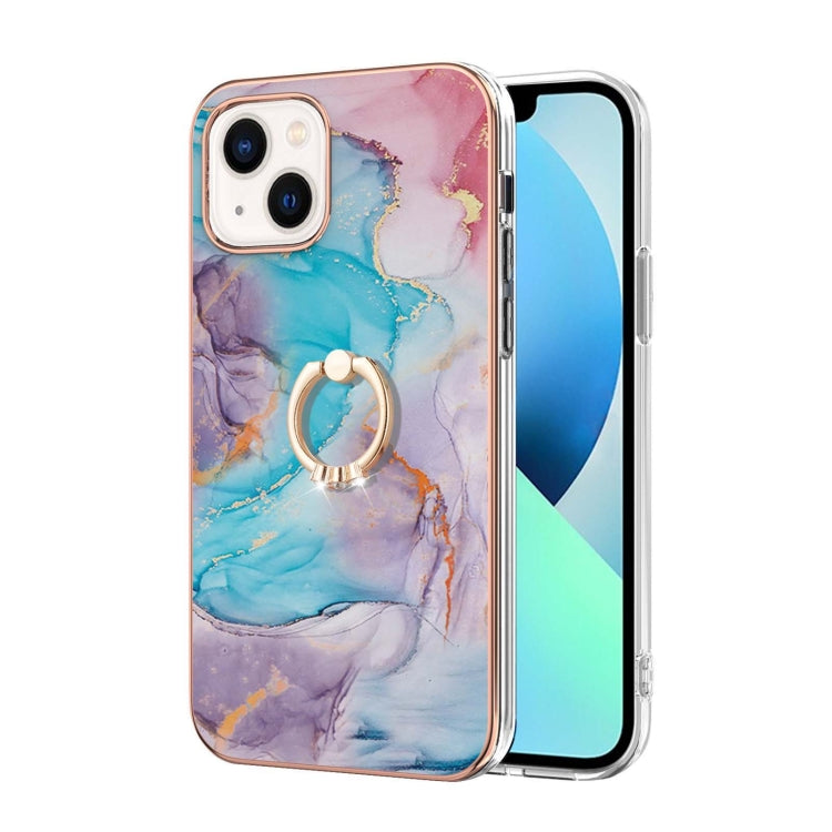 Estuche TPU para iPhone 15 Plus Patrón de Galvanoplastia Imd con Soporte y Protección a Prueba de Golpes (Mármol Azul de la Vía Láctea)